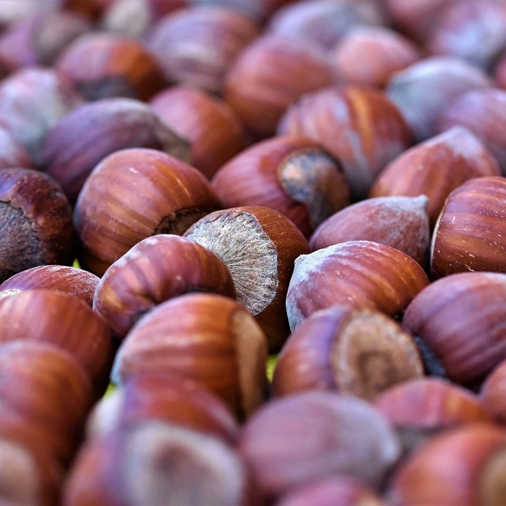 Elegant, golden-yellow catkins in late winter, followed by mid-green, heart-shaped leaves and delicious, edible nuts ripening in mid-August. This variety is usually grown for its heavy crop of hazels but it also makes a very good pollinator of ‘Kent Cob’. An excellent tree for a sunny garden.