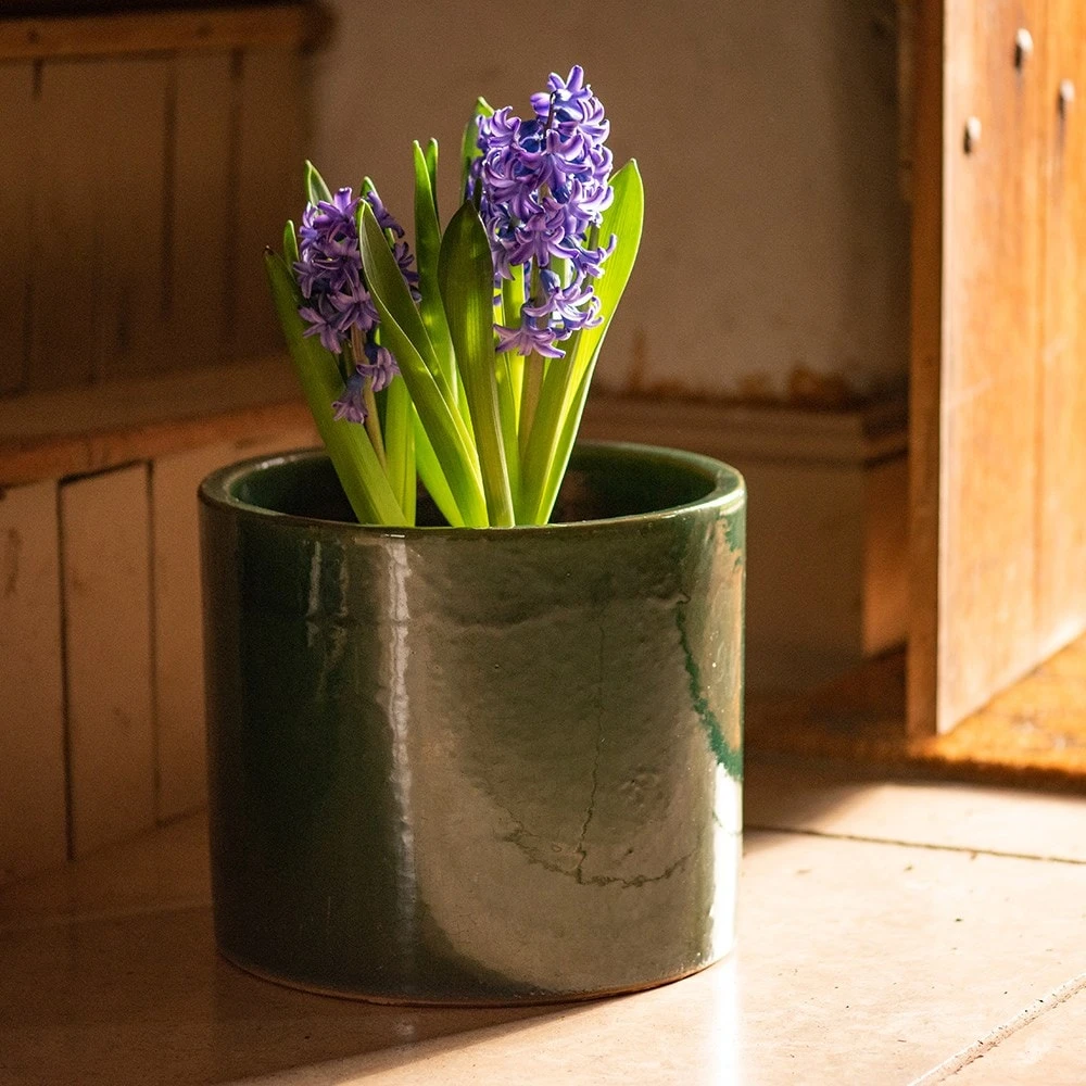 These green glazed cylinder planters are handmade in Vietnam, a country with a long and proud history of producing beautiful ceramics. The rich jewel colour is superb for setting off bright spring bulbs, and great for foliage too.